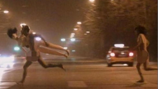 ภาพชุดสาวเปลือยกำลังวิ่งตามหนุ่มไม่สวมเสื้อผ้าแบกตุ๊กตายางไปตามท้องถนนของกรุงปักกิ่ง กลายเป็นประเด็นถกเถียงอย่างร้อนแรงในโลกอินเตอร์เน็ตของจีน