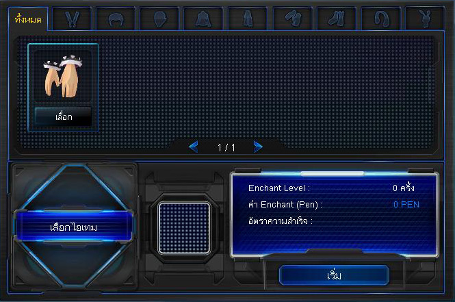 - การ Enchant จะใช้ MP เกจในการอัพเกรด โดยสามารถอัพเกรดได้ถึง Level 20 ซึ่งในการอัพเกรดแต่ละครั้งระบบจะสุ่ม Effect พิเศษให้กับไอเทม ถ้าอัพเกรดล้มเหลวทุกอย่างจะถูกรีเซ็ตกลับไปเลเวล 0 ทันที