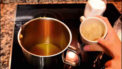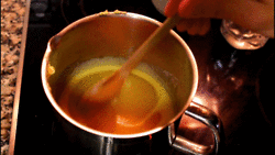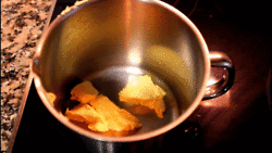 1 เริ่มจากหาหม้อมาก่อนใส่เนยแล้วให้มันละลาย ตั้งไฟอ่อนนะ