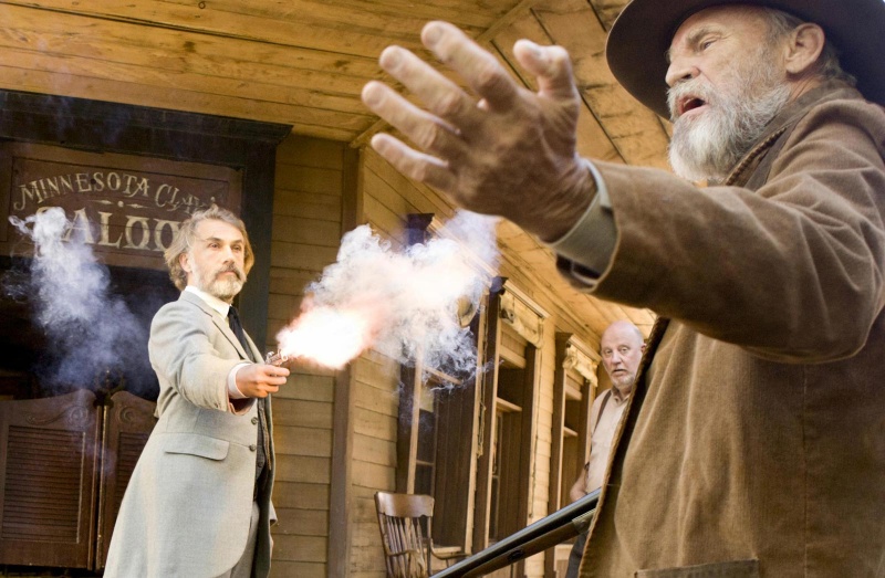 Dr. King Schultz (Christoph Waltz) ก่อนที่จะยิงหัวนายอำเภอ ภาพจาก Django Unchained 2012