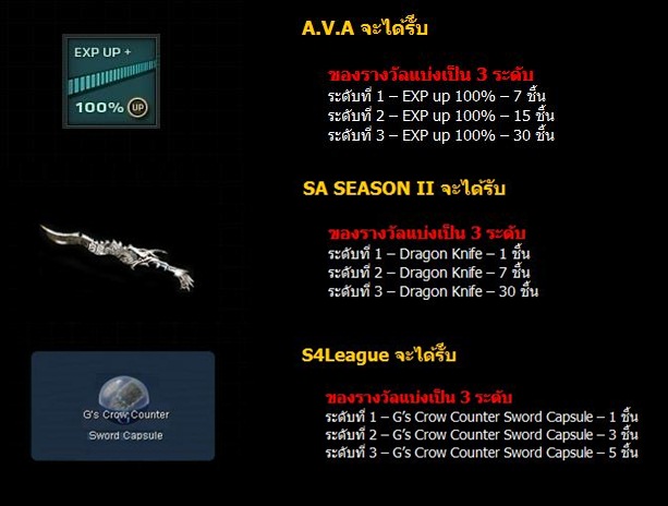 เมื่อเหล่ากองทัพยาเสพย์ติดเหิมเกริม และคืบคลานเข้ามายังเขต PlayFPS จึงได้ประกาศกร้าวรวมพลเหล่านักรบ 4 เหล่าทัพทั้ง CSO, AVA, S4L และ SA2 มาร่วมกันแสดงพลังต่อต้านยาเสพย์ติดกับสงครามเต็มรูปแบบตั้งแต่ 4 – 25 มิถุนายนนี้ เพียง Login ครบ 1,000,000 ID (รวม 4 เกม) รับฟรียกเซิร์ฟภายในวันที่ 28 มิถุนายน 2556 โดยเกม A.V.A รับไปเลย EXP +100%, เกม SA2 รับอาวุธ Dragon Knife และเกม S4League รับ G’S Crow Counter Sword Capsule ไปเลยฟรีๆ นั่นเอง