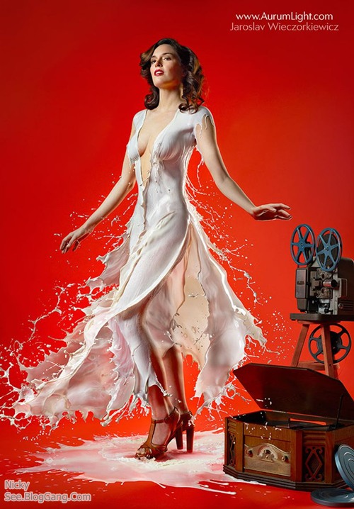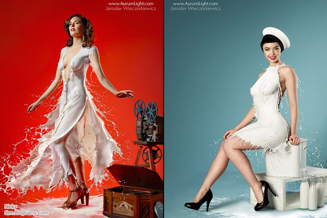 นางแบบสุดเซ็กซี่กับชุดสวยที่ทำจากน้ำนม 'Milky Pinups'