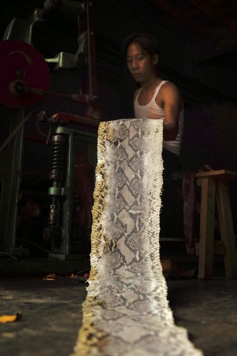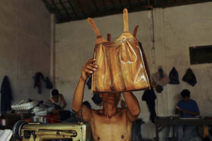 สยอง..โรงงานผลิตกระเป๋าหนังงู