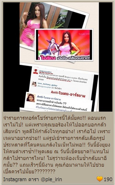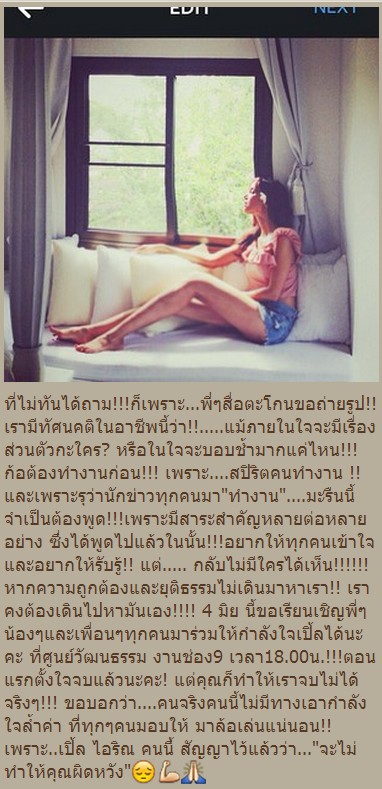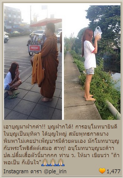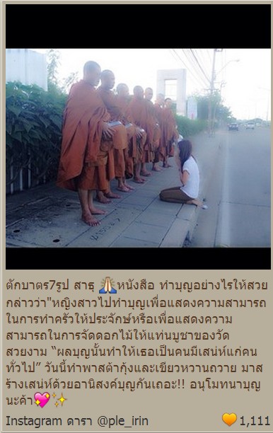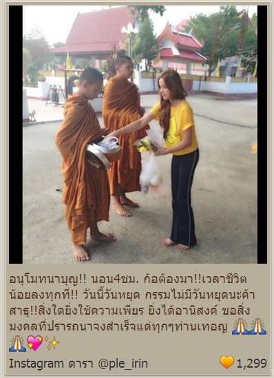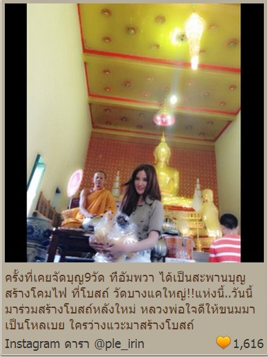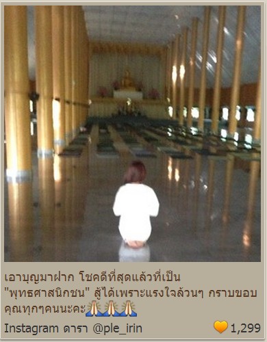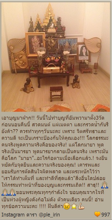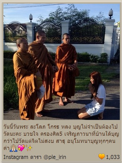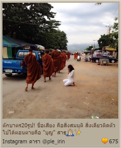เปิ้ล ไอริณ หญิงสาวที่หลายคนกล่าวขวัญถึง ในกรณีที่เธอเป็นข่าวกับใบเตย อาร์สยามอย่างดุเดือด หลายคนอาจจะดูสาวเปิ้ลเป็นสาวลุคเซ็กซี่ เนื่องจากสไตล์การแต่งตัวบวกกับรุูปร่างที่สาวหลายคนอิจฉา (รวมไปถึีง จขกท.ด้วย แฮ่ๆ) แต่จะมีกี่คนจะทราบว่า ภายในลุคเซ็กซี่ สาวเปิ้ลเธอหมั่นทำบุญใส่บาตรอยู่เป็นประจำ หนำซ้ำเธอมีความรับผิดชอบต่อหน้าที่สูง ต่างจากภายนอกที่น่าจะเป็นสาวแรง และขี้หวีน จขกท.ชวนมาไปแอบส่องไอจีสาวเปิ้ล ในมุมมอง ความคิด และจะเห็นว่าเธอขยันทำบุญจริงๆ
