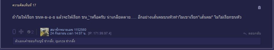 แต่ที่น่าสงสัยคือ ขนที่ขนตรงอวัยวะเพศถึงเรียกว่า ห-ม-อ-ย
