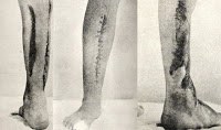 Mustard gas experiments การทดลองผลของมัสทาร์ทแก๊ส ผลจากการได้รับพิษ การรักษาพยาบาล ( Note รูปภาพประกอบ มาจากสงครามโลกครั้งที่ 1 ซ้ายเป็นผลจากการได้รับมัสทาร์ทแก๊ส โดยไม่สวมหน้ากากกันแก๊สพิษ รูปขวา เป็นทหารแคนนาดา ที่ถูกแก๊สมัสทาร์ท จะเห็นว่าเกิดบาดแผลพรุพองทั่วร่างกาย )