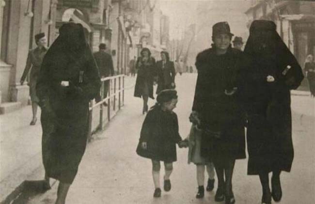 สตรีมุสลิมช่วยเหลือเพื่อนชาวยิวด้วยการใช้ผ้าคลุมหน้าปิดสัญลักษณ์ของชาวยิวไว้ ที่เมืองซาราเยโว ประเทศยูโกสลาเวียในอดีต (1941)