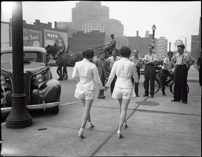 การใส่กางเกงที่ไม่คลุมขาครั้งแรกของสตรี 2 คน ที่เมืองโทรอนโต สหรัฐอเมริกา (1937)