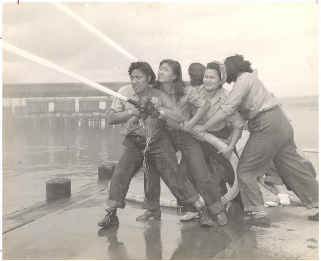 อาสาสมัครหญิงฝึกซ้อมการดับเพลิง ที่อ่าวเพิร์ล ฮาร์เบอร์ (1941-1945)