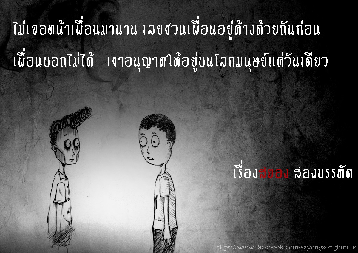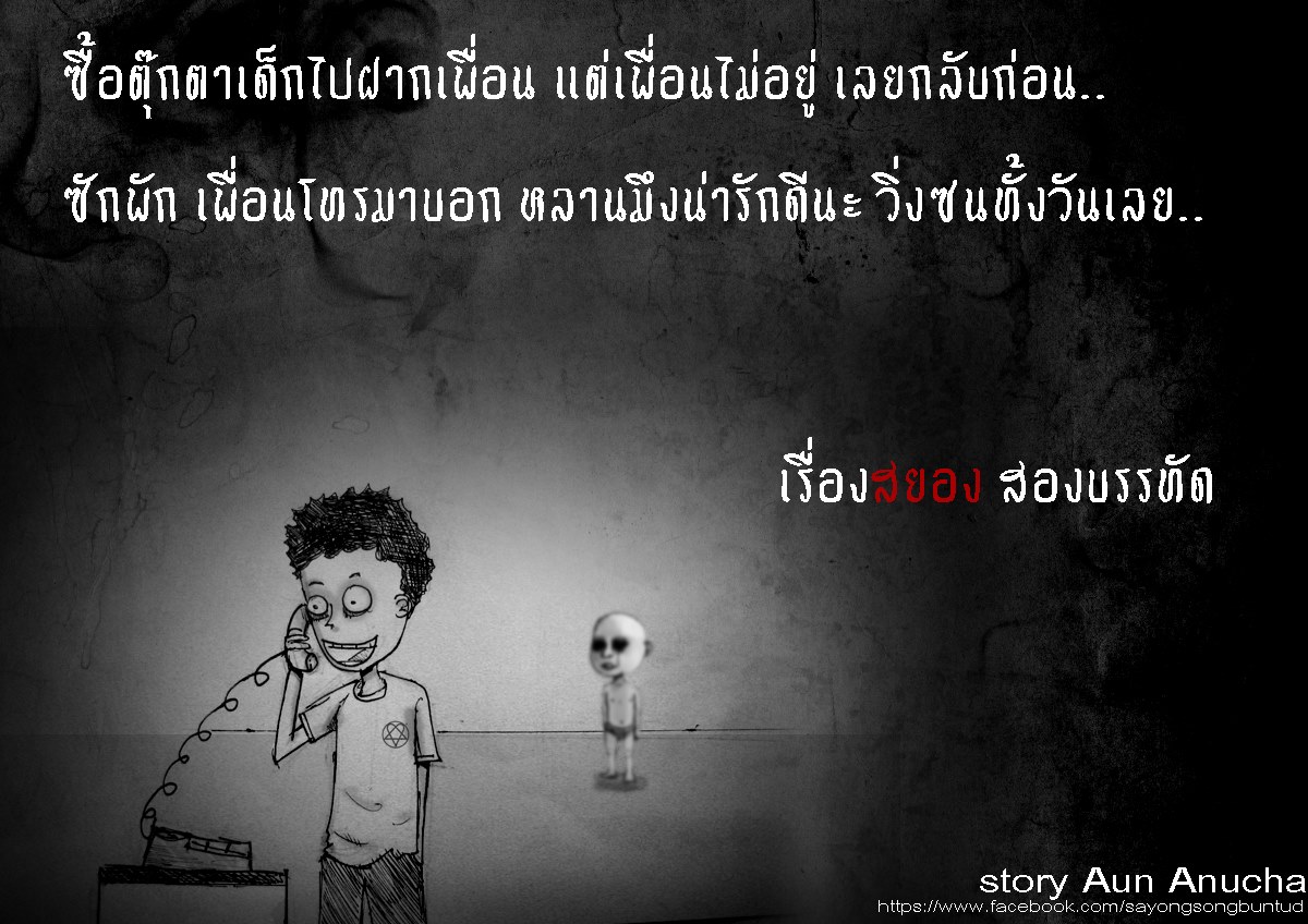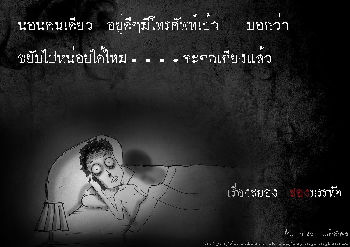 https://www.facebook.com/sayongsongbuntud?fref=nf ใครชอบสยอง2บรรทัดก็ไปติดตามกันได้นะคะ^^