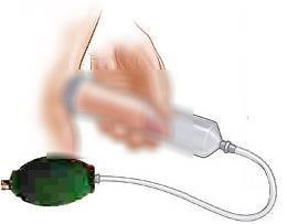 การใช้เครื่องสูญญากาศไปกระตุ้นให้อวัยวะเพศตัวเองให้ใหญ่ขึ้น ก็เป็นวิธีหนึ่งที่มีผู้ผลิตสินค้า ได้โฆษณาถึงประสิทธิภาพของเครื่องสูญญากาศที่สามารถขยายอวัยวะเพศชายให้ใหญ่กว่าเดิมได้แท้ที่จริงแล้วโดยปกติเมื่อร่างกายเจริญเติบโตเต็มที่แล้ว อวัยวะต่างๆ รวมทั้งอวัยวะเพศด้วย ก็จะไม่มี การเจริญเติบโตหรือขยายเพิ่มอีก หรือถ้าจะมีการขยายเพิ่มก็มีขนาดที่เพิ่มขึ้นน้อยมาก