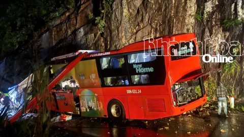 เกิดเหตุหินถล่มทับรถโดยสารประจำทางภูองจรัง