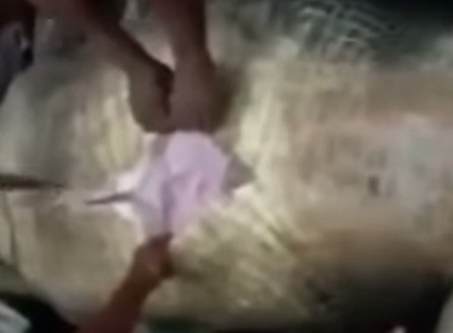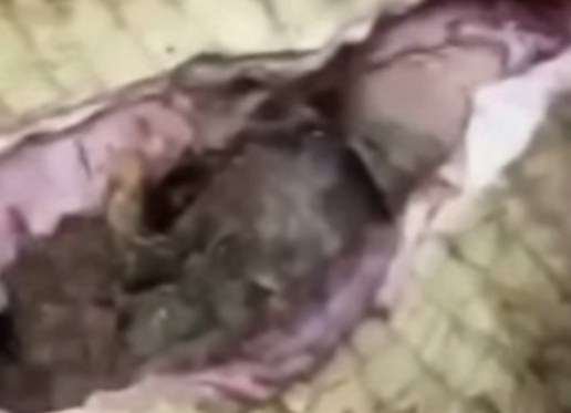 สยดสยองมากกับการผ่าท้องจระเข้ยักษ์ตัวหนึ่งที่ชาวบ้านในหมู่บ้านแห่งหนึ่งซึ่งเป็นได้ระบุในคลิปว่าเป็นบ้านใดหรือเมืองใด