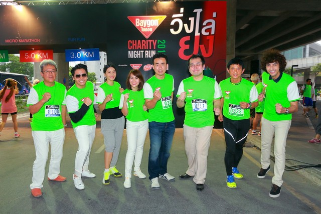 เหล่าคนบันเทิงนำโดย ครีม ทิชาชา บุญเรืองขาว , นนท์ ภูดิศ สุริยวงศ์. พีเค ปิยะวัฒน์ เข็มเพ็ชร และ ทนงศักดิ์ ศุภการ รวมใจร่วมวิ่งเพื่อสุขภาพและการกุศลมอบคืนสู่สังคม ในงาน “วิ่งไล่ยุง - ไบกอน แชริตี้ ไนท์ รัน 2015” ณ สถานีรถไฟฟ้า แอร์พอตเรลลิ่ง มักกะสัน นอกจากนี้ยังมีศิลปิน เจตเซตเตอร์ และ แกงส้ม ธนทัต ร่วมให้ความบันเทิงกับผู้เข้าร่วมวิ่งอีกด้วย กิจกรรมในครั้งนี้จัดขึ้นโดย รัชกร เจนพัฒนพงศ์ (ที่ 5 จากซ้าย) ผู้จัดการบริษัท เอสซี ยอห์นสัน แอนด์ ซัน จำกัด ประเทศไทย ผู้ผลิตและจำหน่ายผลิตภัณฑ์ ไบกอน เป็นกิจกรรมเพื่อสังคมที่ไบกอนจัดขึ้นเป็นปีที่ 2 เพื่อสร้างความตื่นตัวและความเข้าใจที่ถูกต้องในการปกป้องและป้องกันตนเองและครอบครัวให้ห่างไกลจากโรคไข้เลือดออกโดยรายได้ทั้งหมดจากการจำหน่ายบัตรวิ่งในครั้งนี้ทางไบกอนจะนำไปบริจาคมอบให้กับสภากาชาดไทยต่อไป.