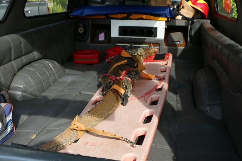 สอบถามนายอุดม ทราบว่า ตัวเงินตัวทองตัวดังกล่าว ปกติจะอาศัยอยู่ในโพรงข้างบ้าน คาดว่าน่าจะมีอยู่ประมาณ 5-6 ตัว และขนาดเท่าๆ กัน ปกติจะต่างคนต่างอยู่ แต่วันนี้ขณะที่ตนกำลังนั่งอยู่ในบ้าน ตัวเงินตัวทองดังกล่าวได้เดินขึ้นมาบนบ้าน ขณะที่ตนเองพยายามไล่ให้กลับออกไป โดยใช้เวลากว่า 5 นาที กลับเดินหนีออกไปทางหลังบ้าน ทำให้ตนเองกลัวและเกรงว่าจะเป็นอันตราย จึงติดต่อขอความช่วยเหลือจากหน่วยกู้ภัยให้เดินทางช่วยจับ