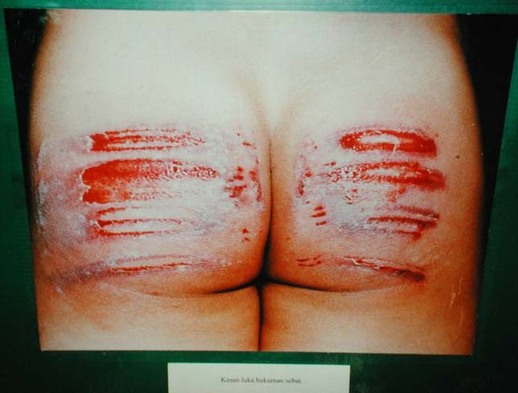 | มีรายงานว่า ระหว่างที่โดนสัก3-4ไม้แรก นักโทษจะพยายามดิ้นด้วยความเจ็บปวด ตอนเลือดจะเริ่มจะทะลักออกมา แต่ไม้หลังๆจากนั้น แรงต่อต้านของร่างกายจะลดลง เพราะประสาทที่รับรู้ดูเหมือนจะชาชินกับความเจ็บปวดไปแล้ว เหลือแต่กล้ามเนื้อยังเต้นริกๆอยู่ทุกครั้งที่หวายกระทบ นักโทษจะส่งเสียงน้อยลงแม้เลือดจะสาดกระเด็น ส่วนใหญ่จะเปลี่ยนมาเป็นสวดมนต์ หรือวิงวอนต่อสิ่งศักดิ์สิทธ์ ความสำนึกผิดชอบชั่วดีจะเกิดขึ้นตอนนี้