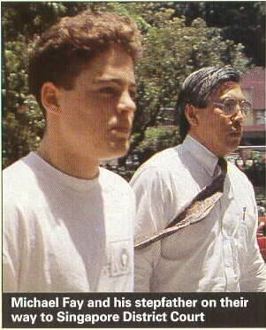 ราวๆสิบห้าปีที่แล้วมา ไมเคิล ปีเตอร์ เฟย์(Michael Peter Fay) วัยรุ่นอายุ18ปี สัญชาติอเมริกันถูกศาลชั้นต้นของสิงคโปรตัดสินในวันที่31 มิถุนายน 2537ให้จำคุก 4 เดือน ปรับ2200เหรียญหรือ 33000บาท และให้เฆี่ยนด้วยหวาย 8 ที ในข้อหาทำลายทรัพย์สินสาธารณะและของผู้อื่น คดีนี้ดังไปทั่วโลก เพราะอเมริกันชนซะอย่าง กลุ่มสิทธิมนุษยชนได้กระพือข่าวขึ้น หาว่าสิงคโปรยังมีกฏหมายล้าหลังที่ทารุณโหดร้าย และเรียกร้องให้รัฐบาลสหรัฐเข้าแทรกแซง ในระหว่างที่รอการพิจารณาของศาลอุธรณ์ อเมริกันนับล้านก็ออกมาให้ความเห็นผ่านสื่อต่างๆ ทั้งที่เห็นด้วย และไม่เห็นด้วย แต่มติไม่ขาดเพราะทั้งสองฝ่ายมีจำนวนก้ำกึ่งกัน ในที่สุดประธานาธิบดีบิล คลินตันก็ถูกกดดันให้ส่งสาส์นถึงประธานาธิบดีของสิงคโปร ขอให้ยกโทษเฆี่ยนแก่เด็กอเมริกันคนนี้ อ้างว่าเกินแก่ความจำเป็น แต่สิงคโปรก็เฉยๆไม่โต้ตอบอะไร