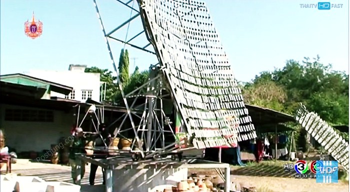 คุณศิลา สิทธาราษฎร์ ขายไทยวัย 50 ปี คนจังหวัด เพชรบุรี เป็นผู้ที่สนใจเกี่ยวกับ การใช้เลนส์ในการจุดไฟจากแสงอาทิตย์มาตั้งแต่เด็ก ก็เลยคิดค้นเตาย่างไก่ โดยใช้พลังงานจากแสงอาิทิตย์ล้วนๆ ด้วยการออกแบบกระจกเงาแบบพิเศษ ช่วยให้เตาย่างดูดซับพลังความร้อนจากแสงอาทิตย์ จากกระจก 1,000 บาน ให้ความร้อนถึง 400 องศาเซลเซียส สามารถย่างไก่ที่หมักเครื่องปรุงไว้แล้ว ขนาด 1.5 กิโลกรัม สุกในเวลา 10 - 15 นาที