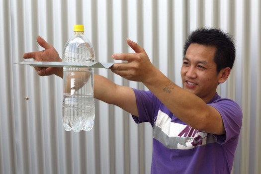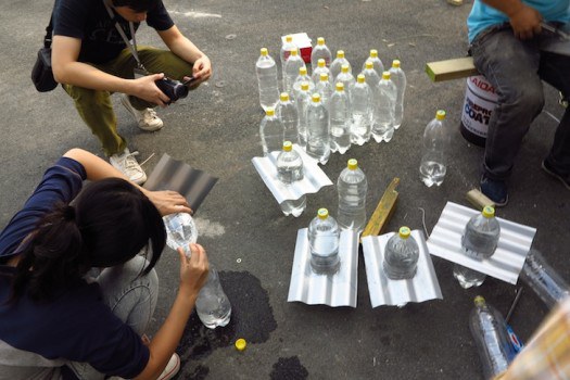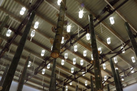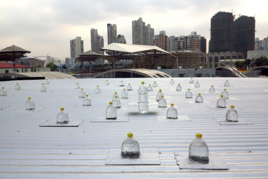 ในย่านสลัมและชุมชนยากจนในฟิลิปปินส์ ได้เปลี่ยนขวดน้ำพลาสติกพื้นๆที่เราคุ้นเคย ให้กลายเป็นหลอดไฟพลังงานแสงอาทิตย์อย่างง่ายๆ ด้วยขวดพลาสติกใส่น้ำธรรมดาๆ ช่วยให้แสงสว่างกับบ้านในเวลากลางวัน ได้อย่างดี ช่วยประหยัดหลอดไฟ และค่าไฟ ให้กับชาวบ้าน สำหรับบ้านหลังนี้ เป็นพาวิเลียน แสดงเกี่ยวกับแสงสว่าง ในงาน the Shanghai Biennale ออกแบบโดย Stephen และ Andrew Lord มันใช้ขวดน้ำพลาสติก รีไซเคิล 56 ใบ ให้แสงสว่างเสมือนหลอดไฟจริงๆ