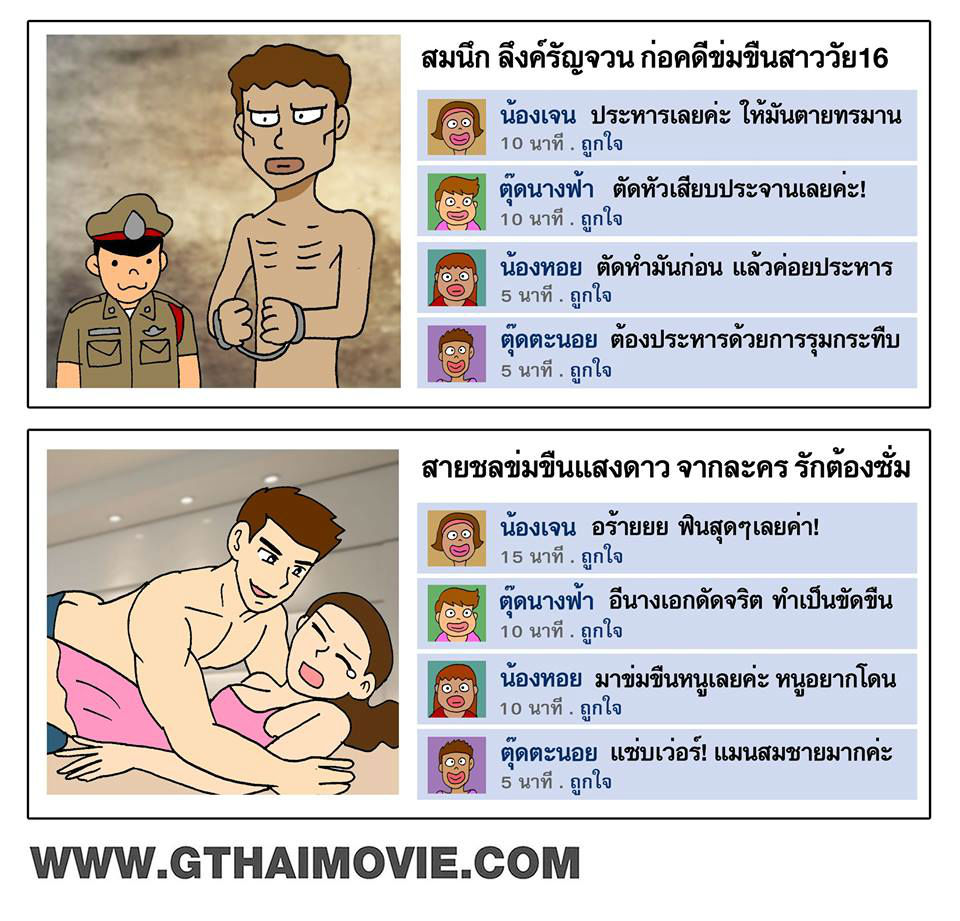 - โดนข่มขืน ไม่เห็นจะเป็นไร สุดท้ายเค้า(มัน)ก็จะหลงรักเรา และรับผิดชอบเราเองแหล่ะ