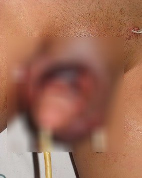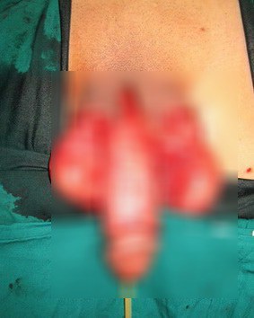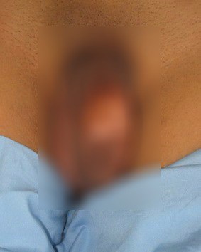 หลังจากเอาตัวอวัยวะไปฝังไว้แล้ว ก็ให้ผู้ป่วยกลับบ้านครับ เพื่อรอให้ตัวอวัยวะเพศฟื้นตัวครับ ซึ่งระหว่างนี้ตัวอวัยวะที่ถูกฝังไว้ในถุงอัณทะก็จะเป็นดังรูปครับ