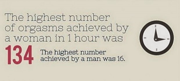 5. ภายในหนึ่งชั่วโมงผู้หญิงสามารถเสร็จได้ 134 ครั้ง ในขณะที่ผู้ชายเสร็จได้เพียง 16 ครั้งเท่านั้น