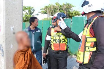 เสื่อมอีก!! พระเมานอนริมฟุตบาท "เมืองปทุมฯ" ขณะตร.เข้ารวบจ่อจับสึก