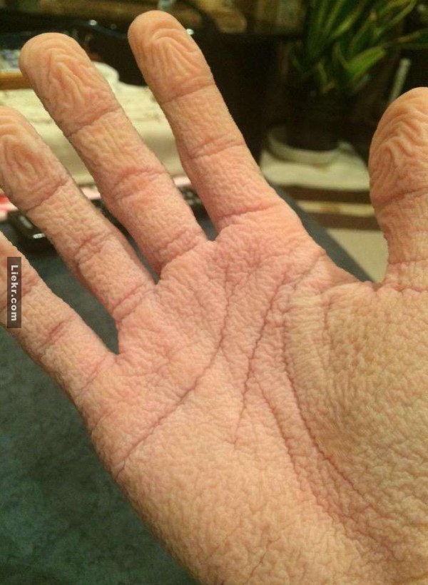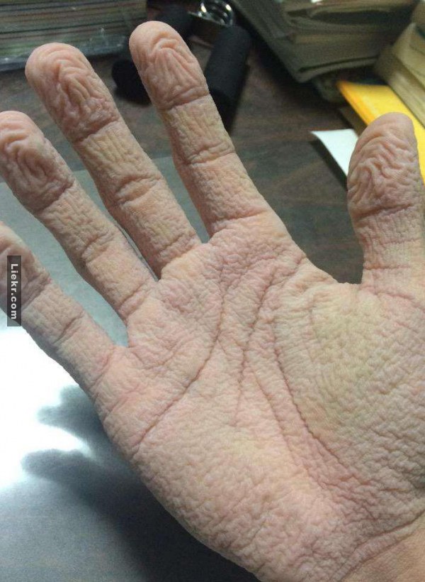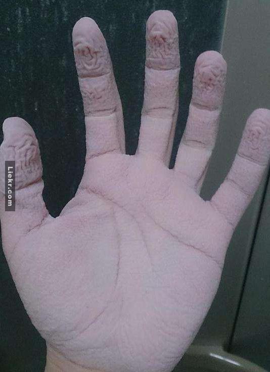 เวลาไปว่ายน้ำหรือแช่น้ำนานๆ มือของเราก็จะเปื่อย ซึ่งชาวญี่ปุ่นผู้กล้าคนนี้เกิดสงสัยขึ้นมาว่า มือของเรามันจะเปื่อยสุดๆได้สักแค่ไหนเชียว เขาจึงทดลองพิสูจน์ด้วยตัวเองด้วยการเอามือไปแช่ในน้ำ และโพสต์ภาพผลการทดลองให้เราได้ชมกัน