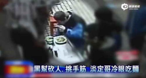 หนุ่มชาวไต้หวันนั่งกิน "ก๋วยเตี๋ยว" อย่างใจเย็นแม้ตกอยู่ท่ามกลางเหตุทะเลาะวิวาทระหว่าง 2 แก๊งค์ที่อาวุธครบมือ