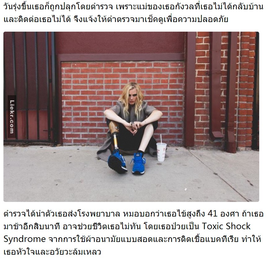 เพราะผ้าอนามัยเพียงแผ่นเดียว ทำให้ต้องตัดขาทิ้ง! โชคชะตาก็เล่นตลกกับนางแบบสาวที่กำลังอยู่ในจุดสูงสุดของชีวิต