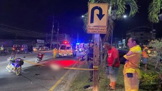 จยย.หนุ่มซิ่งเสียหลักชนป้ายบอกทางดับคาที่ ปืน มีดโผล่