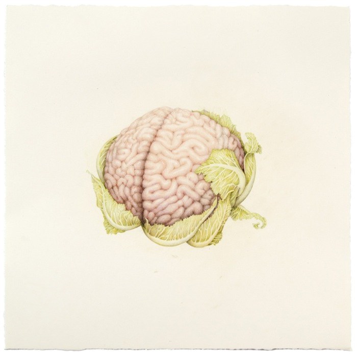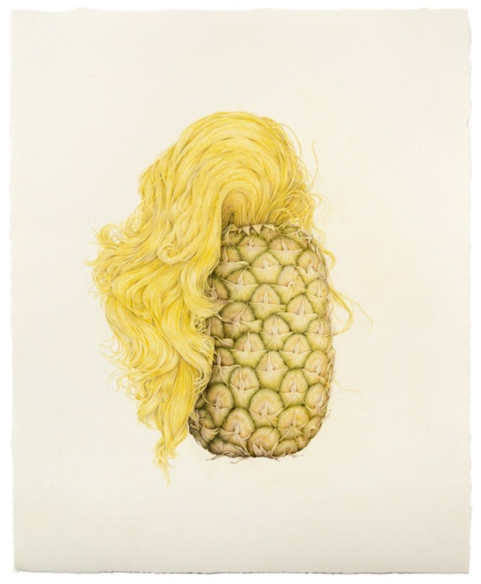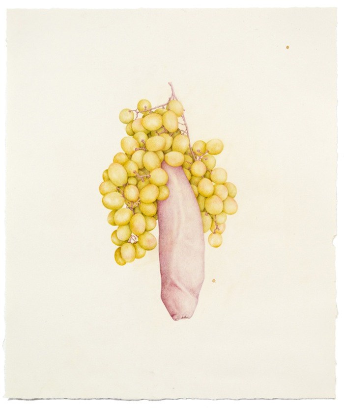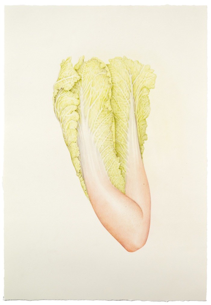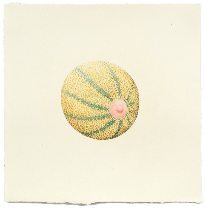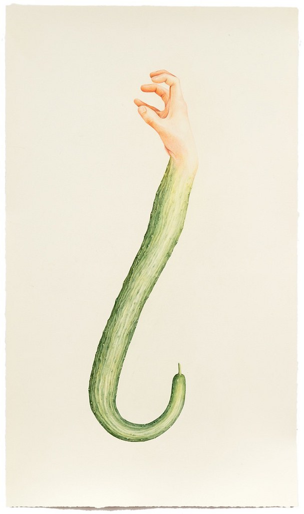 Aurel Schmidt ศิลปินจากนิวยอร์ก สร้างชุดของภาพวาดที่ชื่อ ‘ผลไม้’ ที่ผสมผสานส่วนของร่างกายมนุษย์ลงไปในผลไม้และผักต่างๆ ผ่านองค์ประกอบ hyperrealist และสีขาวซีด มันเป็นภาพที่ละเอียดอ่อนและแปลกประหลาด