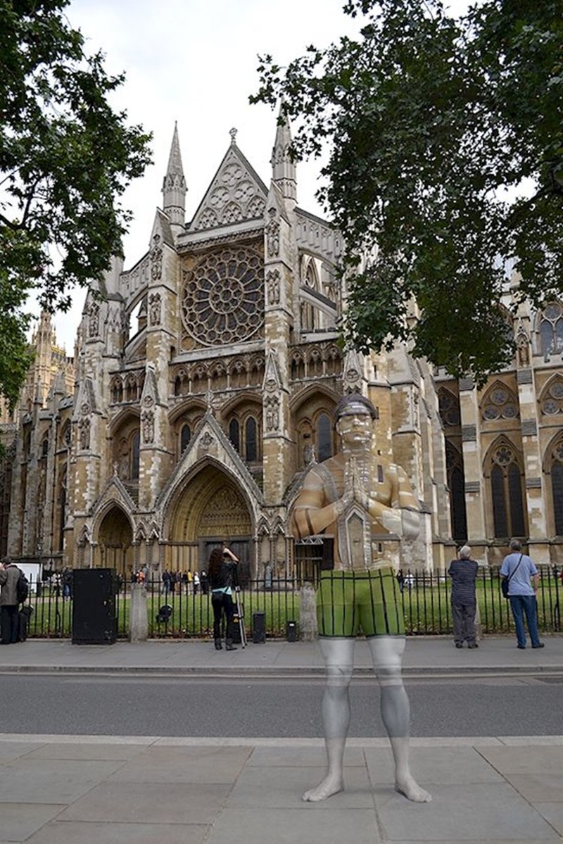 Trina Merry ศิลปินสาวชาวนิวยอร์กที่เชี่ยวชาญการเพ้นท์ร่างกาย ได้สร้างผลงานศิลปะด้วยการเพ้นท์ร่างกายนายแบบและนางแบบให้กลมกลืนไปกับสถาน ที่สำคัญของหลายประเทศทั่วโลก ซึ่งฝีมือของเธอนั้นไม่ธรรมดาเลยทีเดียวเพราะบางภาพนั้นถึงกับต้องมองหาอยู่ ตั้งนานกว่าจะเห็นราวกับว่าเป็น "มนุษย์ล่องหน" เลยทีเดียว