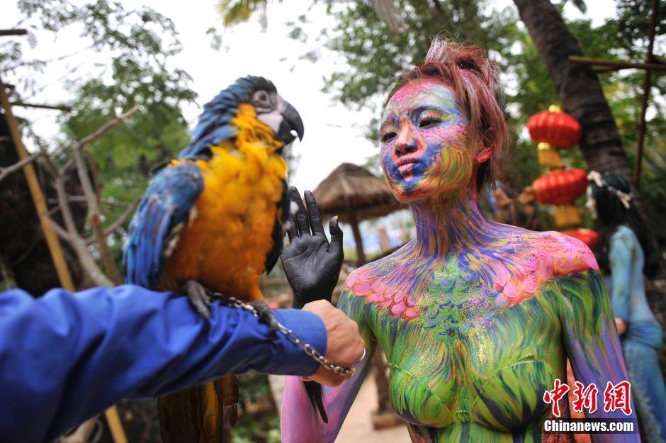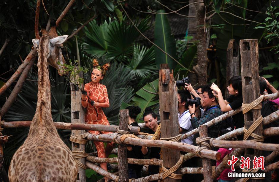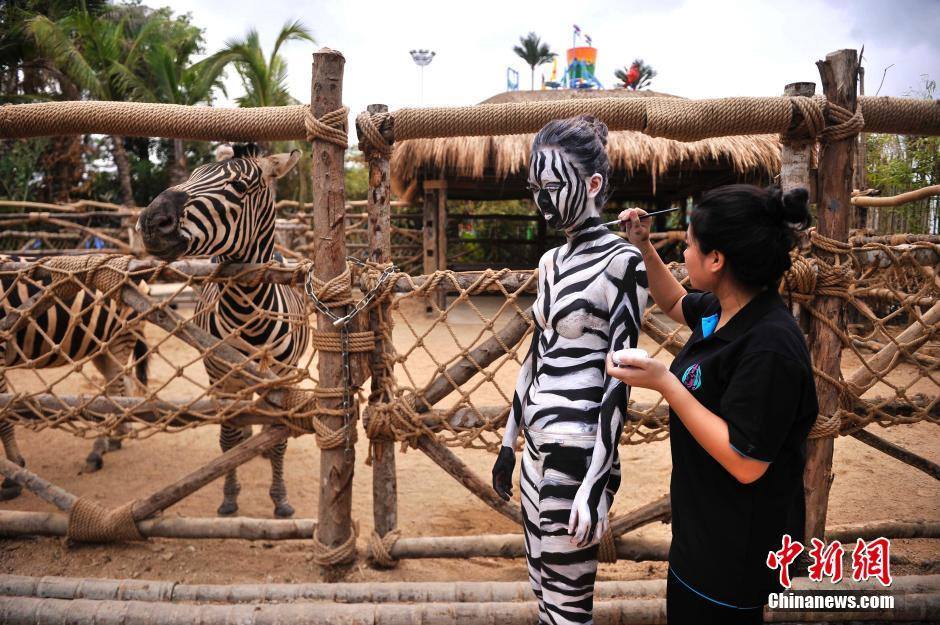 เมื่อวันที่ 10 มกราคมที่ผ่านมา สาวสวยกว่า 10 คนที่เพ้นท์ตามตัวเป็นลวดลายสัตว์กำลังทักทายบรรดาเสือ ม้าลาย นกยูง นกแก้ว และนกฟลามิงโก้ ฯลฯ ที่สวนสัตว์ในเมืองซานย่าแห่งมณฑลไหหลำ กลายเป็นภาพ“Beauties and Beasts" ที่สมจริงและได้รับความสนใจจากนักท่องเที่ยวจำนวนมาก กิจกรรมครั้งนี้มีวัตถุประสงค์ในการรณรงค์ให้ร่วมกันอนุรักษ์สัตว์