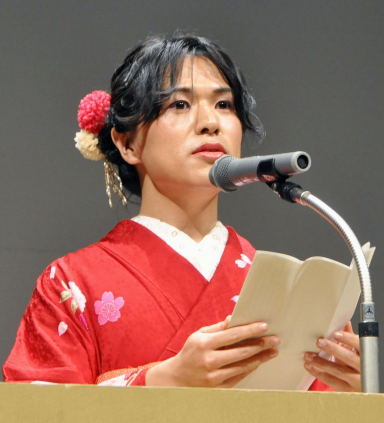 ชุนกะ ฮิราโอะ วัย 27 ปี ซึ่งมาในชุดกิโมโน ได้กล่าวถึงปัญหาที่เธอไม่ได้รับการยอมรับในฐานะผู้หญิง ด้วยการที่เธอเกิดมาด้วยร่างกายที่เป็นชาย และเธอต้องปิดบังเพศสภาพของเธอกับพ่อแม่มาเป็นเวลาที่ยาวนาน ก่อนประกาศในงานว่า ต่อจากนี้เธอจะใช้ชีวิตอย่างที่เธอเป็น เพื่อเป็นแรงบันดาลใจให้กับผู้อื่นด้วย