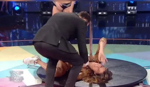 (คลิป) มิสฝรั่งเศส 2011 หวิดคอหัก! หลังโชว์รูดเสาพลาดเอาคอลง กลางรายการ
