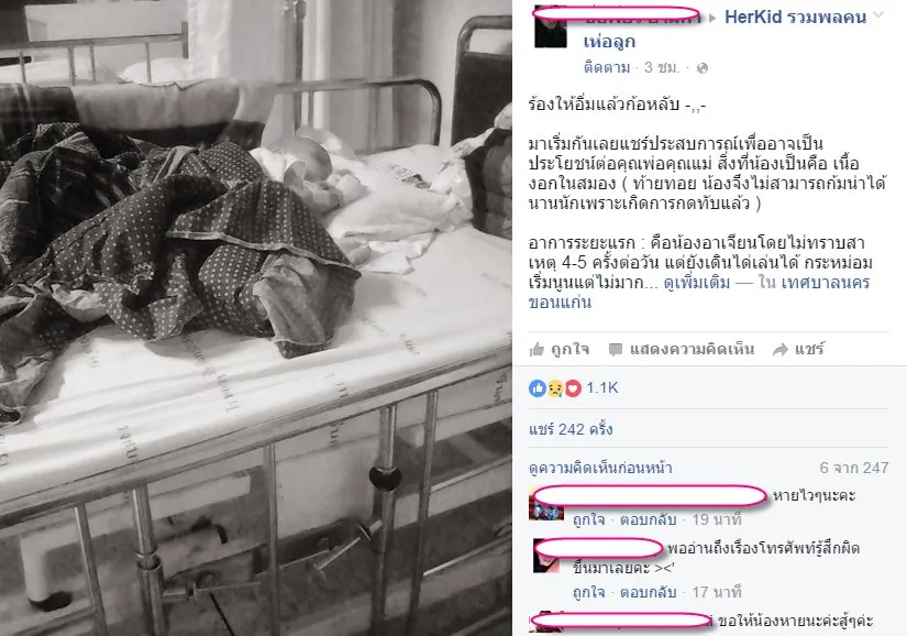 คุณแม่ยิว “หวังว่าเรื่องราวของน้องจะมีประโยชน์ต่อคุณพ่อคุณแม่นะคะ…ขอให้ลูกน้อยของพ่อแม่ทุกคน มีสุขภาพร่างกายแข็งแรง เป็นเด็กดีนะคะ ขอบคุณทุกๆกำลังใจ เราจะผ่านมันไปให้ได้ค่ะ“