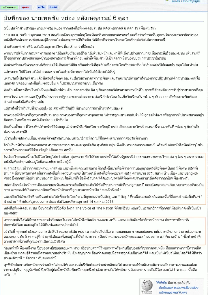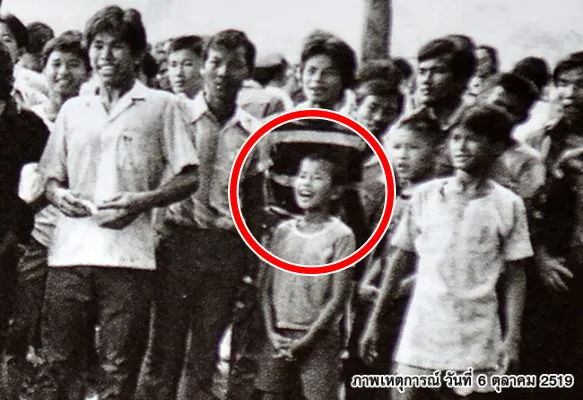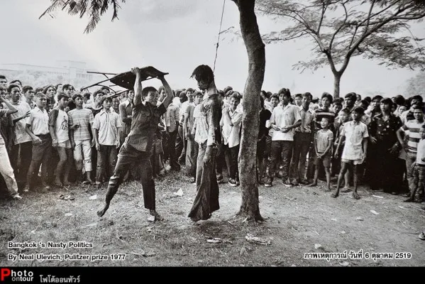 ภาพนี้เป็นภาพเหตุการณ์ในช่วง 6 ตุลา' 2519 เป็นช่วงที่มีความขัดแย้งทางการเมืองอย่างรุนแรง นำไปสู่การใช้กำลังปะทะกันระหว่างผู้ที่มีความขัดแย้งทางด้านการเมือง