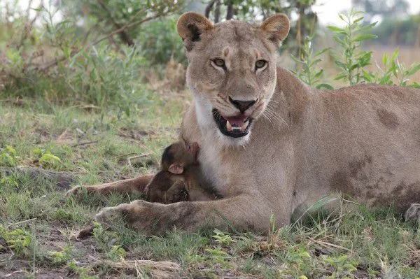 สิงโตตัวเมียนั้นรู้ได้เลยทันทีว่าต้องปกป้องเจ้าตัวเล็กที่นอนอยู่ระหว่างอกของเธอ