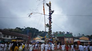 ตรัง ศาลเจ้าตรังตัดต้นไผ่เตรียมยกเสาเต็งโก