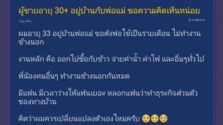 หนุ่มถาม"30+อยู่บ้านเฉยๆพ่อให้รายเดือน บอกแฟนพี่ทำงานธุรกิจครอบครัว " ขอคำปรึกษาในโซเชียล