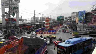 ความคืบหน้ารถไฟฟ้าสายสีเหลืองตรงสะพานข้ามแยกบางกะปิ หน้าแฮปปี้แลน