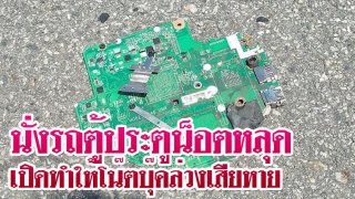 ดราม่า !! นั่งรถตู้ประตูน็อตหลุดเปิดทำให้โน๊ตบุ๊คร่วงเสียหาย