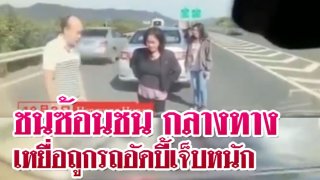 ชนซ้ำชนซ้อน กลางทางหลวง เหยื่อถูกรถอัดบี้เจ็บหนัก