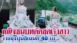 หญิงชนบทจีนตัดชุดเจ้าสาวจากถุงปูนซีเมนต์ 40 ใบ