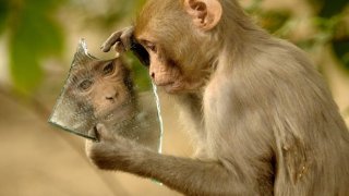 "เกิดมาหน้าตาดีก็เงี้ย" เจ้าลิงน้อยเก็บกระจกเงาได้ เอามาส่องแบบไม่วางกันเลยทีเดียว