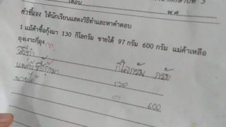 มีมาอีก!! โจทย์เลข ป.3 ซื้อกุ้ง 300 กก. แต่ดันถามตอนท้ายว่าแม่ค้าเหลือถุงเงาะกี่ถุง