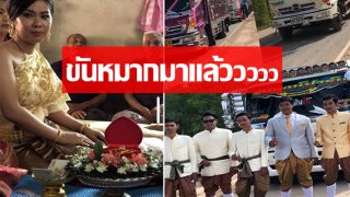 ชาวบ้านฮือฮา! ขบวนแห่ขันหมาก “สิบล้อ” 30 คัน หอบสินสอดขอสาวสงขลา (คลิป)
