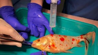 เจ้าของทุ่มเงิน 300 ปอนด์ ให้หมอช่วยผ่าตัดเอาก้อนเนื้องอกออกจากปาก 'ปลาทอง' แสนรัก