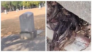 หนุ่มผวา! หลังพบเห็นเส้นผมมนุษย์โผล่ออกมาใต้หลุมฝังศพ อายุ 100 ปี